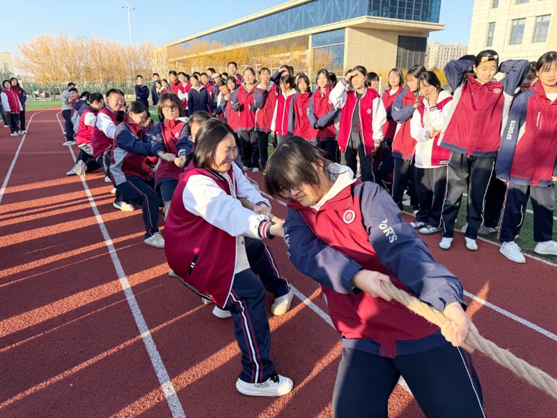 比赛前,班主任耐心地分解动作、布置战术,队员们彼此加油、认真热身,眼中闪烁着不容动摇的决心。裁判哨声响起的刹那,所有人牢牢攥紧粗绳,身体一致后仰,双脚紧抵地面,全力向后拉去。一场场比赛,不仅是力量的对抗,更让每个人都真切体会到“人心齐,泰山移”的含义,也在拼搏中收获了更深厚的友谊与成长。