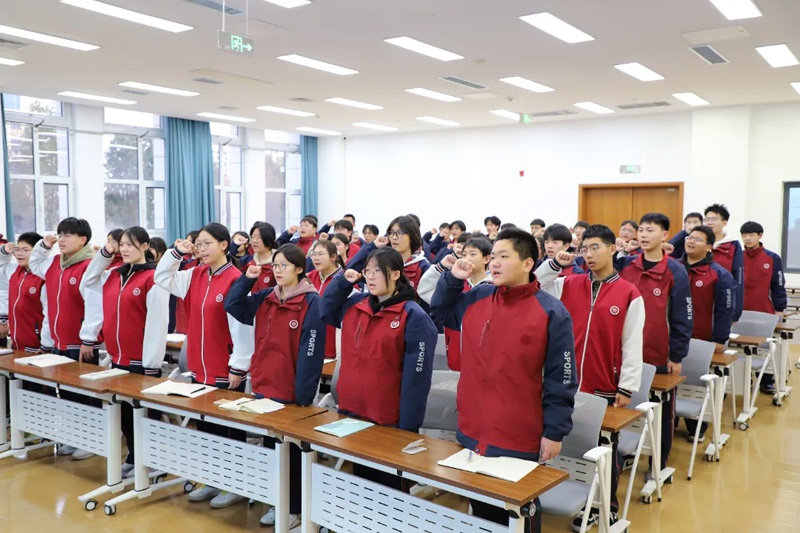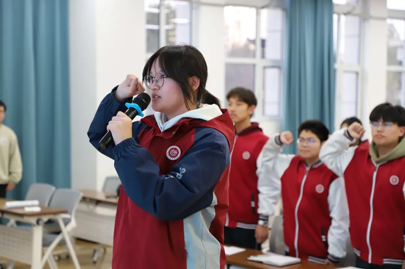 班会在激昂的 “集体宣誓” 中结束。全体同学肃然起立,紧握右拳。铿锵誓言回荡在教室,更铭刻在每一位学子心中。