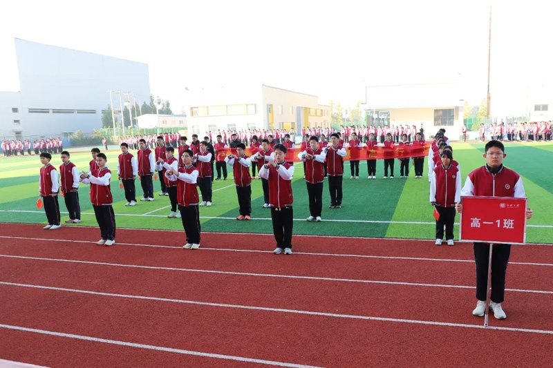 国旗队护送着五星红旗,庄严地引领入场队伍。紧随其后的,是各个班级的方阵。他们步伐整齐划一,口号响亮有力,一张张年轻的脸庞洋溢着自信与朝气。每个方阵都展现出独特的风采:有的班级挥拳起势,动作刚健,展现出蓬勃的力量;有的班级手持羽毛球拍,随着韵律舞动,步伐轻盈;还有的班级随着动感的节奏欢快起舞,青春的身影在阳光下跃动。同学们以不同的形式诠释着班级的文化与精神,为这场运动会增添了绚烂夺目的色彩。