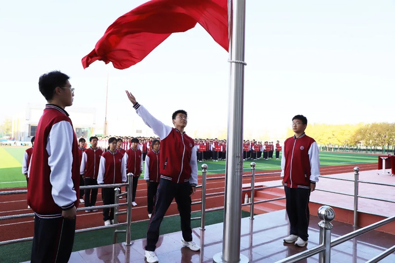 各班级展示完毕,庄严的国歌奏响,全体师生肃立,目光紧紧追随那缓缓升起的五星红旗,每个人的心中都涌动着对祖国的热爱与敬意。