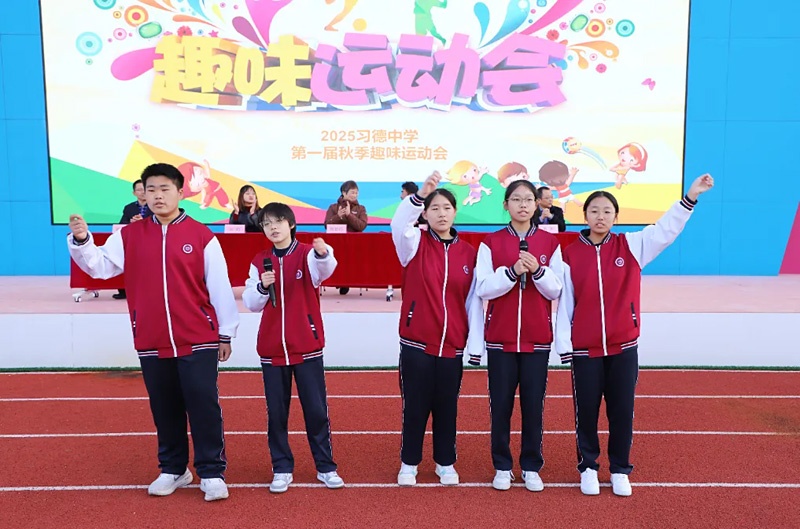在全场热烈的期盼中,贺君巧校长郑重宣布:“我宣布,2025年习德中学第一届秋季趣味运动会,开幕!”