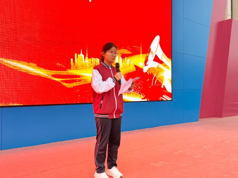 高一(10)班学生代表高博优在庄严的国旗下发表了演讲。她说道,行为规范是社会有序运行不可或缺的基石,这不仅是一句口号,更应成为同学们自觉的行动准则。她呼吁同学们从现在做起、从自身做起、从身边一点一滴的小事做起,用文明的语言沟通彼此的心灵,以规范的行为传递校园正能量。她希望同学们携手并肩,共同努力,营造一个整洁、有序、和谐、文明的校园环境,让美好在大家手中延续。