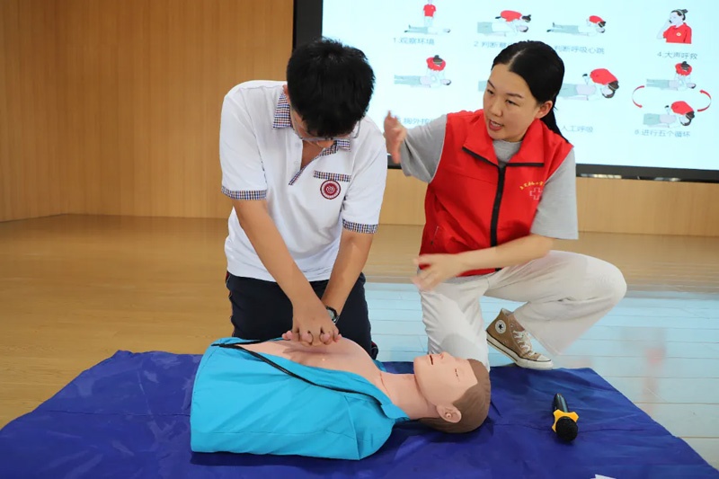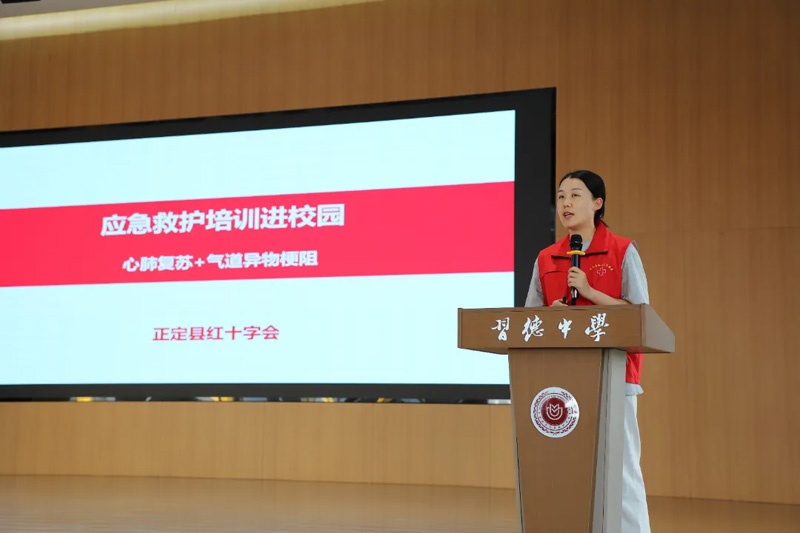 为进一步普及校园应急救护知识,提升学生应对突发状况的能力,正定县红十字会陈晓竞秘书长率领团队走进习德中学,为同学们开展了一场生动精彩且实用的海姆立克急救法与心肺复苏(CPR)培训。