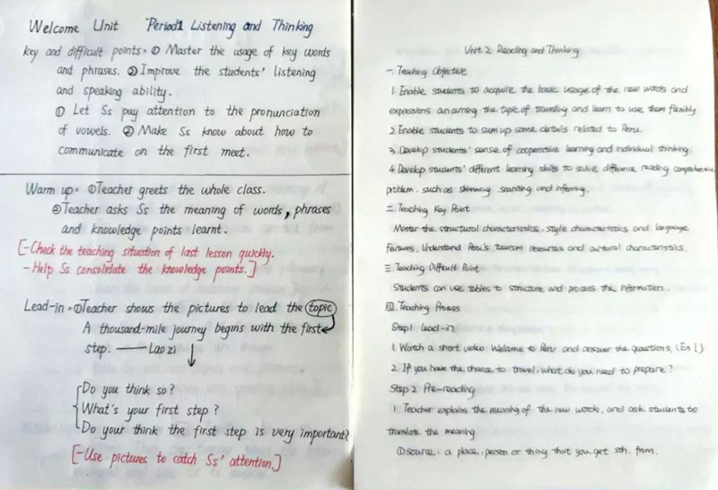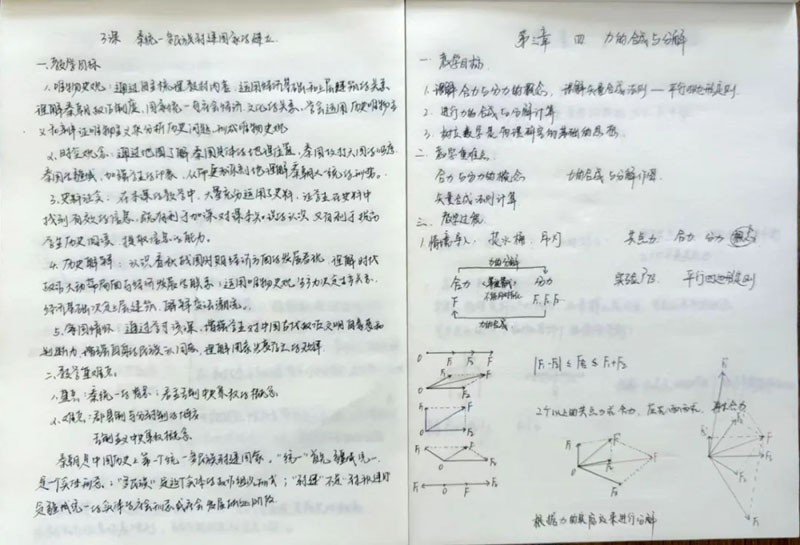 每一份手写教案都是老师们心血的结晶,字里行间透露着他们对教学的热爱与执着。教案上工整的字迹,清晰的思路,展现出老师们对教学的严谨态度。这些教案不仅是他们备课的成果,更是他们与学生沟通的桥梁,承载着知识的传递与智慧的启迪。