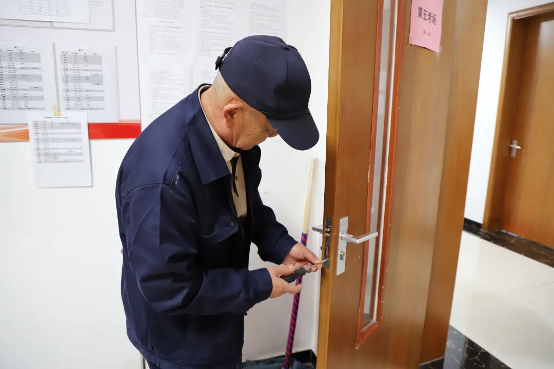 后勤人员以 “拉网式” 排查筑牢安全防线,深入教室、宿舍、食堂、办公室及实验室等重点场所,对水电线路、消防设施、门窗桌椅等进行全面检查与维护,细致排查、彻底整改每一处安全隐患,筑牢校园安全底线。