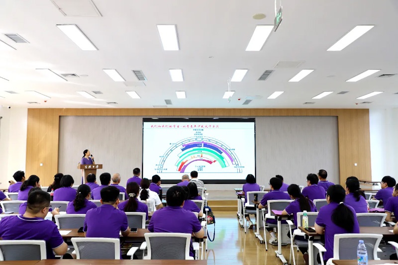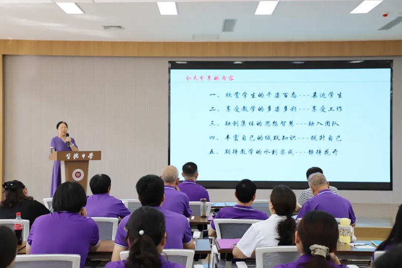 为进一步深化教学改革,提升课堂效能,激发教师的教学热情与学生的学习动力,营造更加和谐、高效、充满活力的校园生态,我校于8月19日荣幸邀请到石家庄二中骨干教师、深受学生爱戴的刘凤果老师,为全体教师带来了一场主题为 “爱学乐教,教学相长” 的精彩专题讲座。